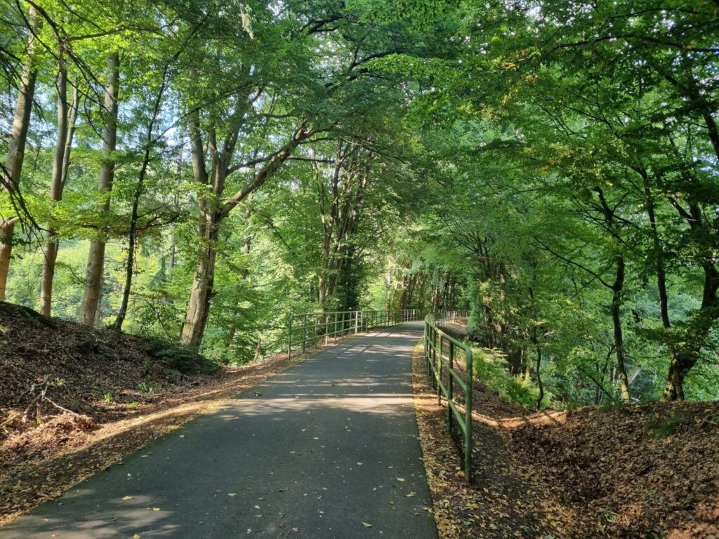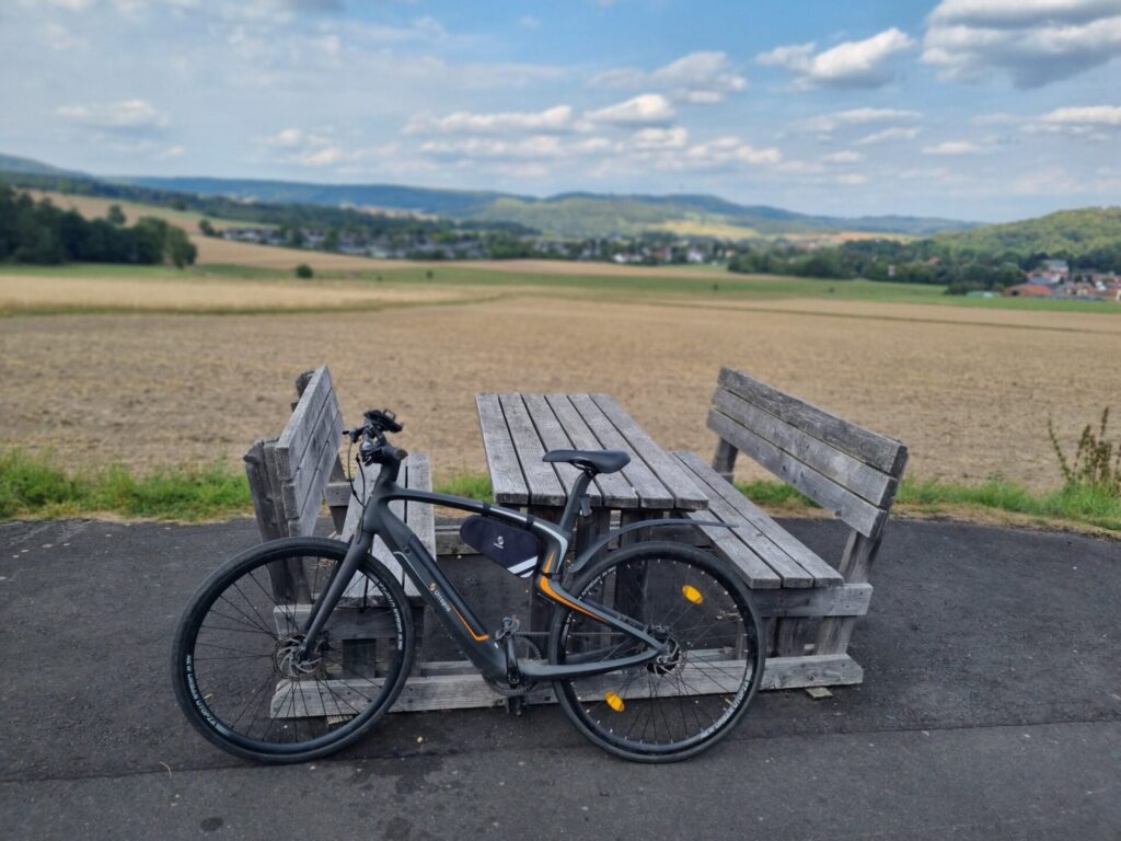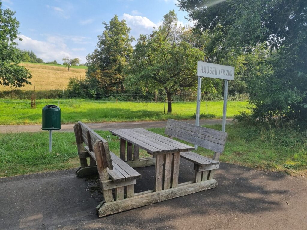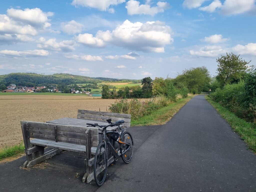 Leider gibt es auch hier keinen Radweg und auch keine Alternative durch den Wald. Nach rund drei anstrengenden und nicht ganz ungefährlichen Kilometern ist dann noch vor dem Ortseingang von Hausen die Anschlussstelle des Bahnradweges Rotkäppchenland erreicht.