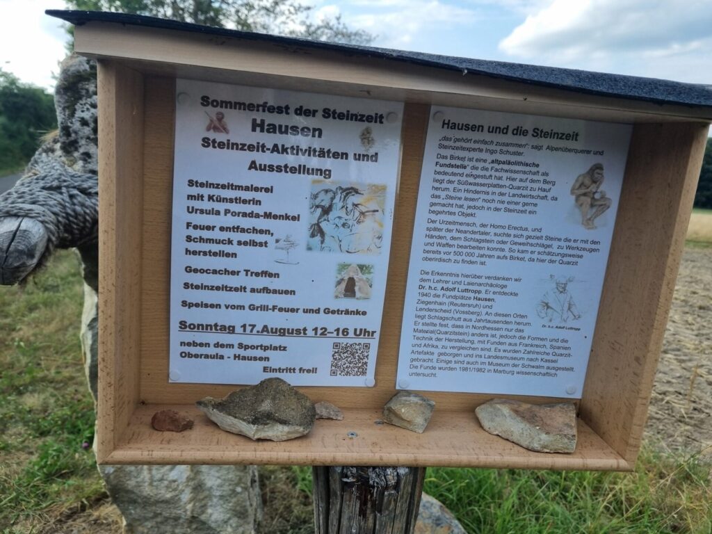 Nicht weit vom Startpunkt findet man einen Hinweis auf ein Steinzeitliches Fest, das am 16. August 2025 stattfand. Auf diesem Fest mit Geocacher-Treffen wurden steinzeitliche Zelte errichtet, Feuer entfacht, Schmuck gebastelt und die Künstlerin Ursula Porada-Menkel führte steinzeitliche Malerei vor.