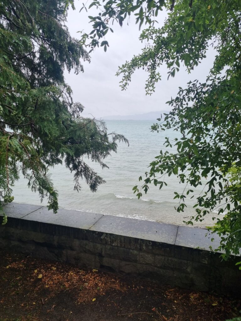 Nach ein paar Metern am Ufer stehe ich vor einem Zaun und muss den Bodensee wieder verlassen. Es handelt sich um die Umzäunung einer Erholungseinrichtung.