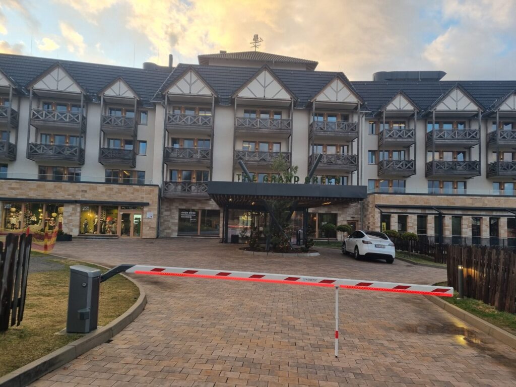 Wir liefen die Tambacher Straße abwärts, marschierten am großen „The Grand Green Familux Resort“ vorbei und erreichten den Stadtplatz.