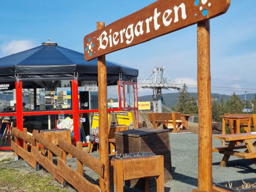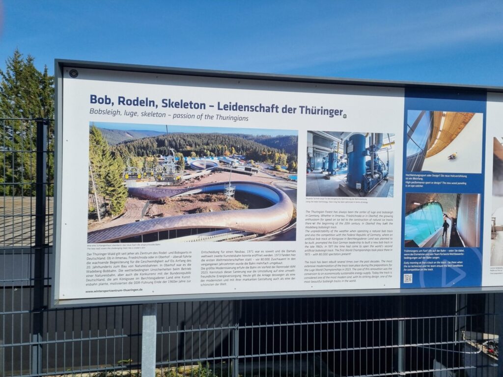 „Traditionell wird hier Ski gefahren – alpin. Mittelgebirgslagen sind nicht gerade berühmt dafür, aber die 800 Meter lange Abfahrt im LOTTO Thüringen Snowpark ist perfekt für Familien. Die Flutlichtanlage ermöglicht auch das Schneevergnügen am Abend nach der Arbeit und der FUNPARK lässt bei freestyle-begeisterten Boardern ohnehin keine Wünsche offen.“ heißt es auf der Tafel.