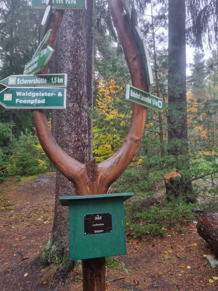 Den 12 Kilometer langen Rundwanderweg „Walter Schütz“ komplett zu erwandern, war bei der extremen Wetterlage am 23. Oktober 2025 nicht ratsam. Nach dem Stempel Nr. 260, den man direkt am Parkplatz vor dem „Tobiashammer“ einsammeln kann, wäre die Gothaer Vereinshütte (Nr. 261) der erste Anlaufpunkt.