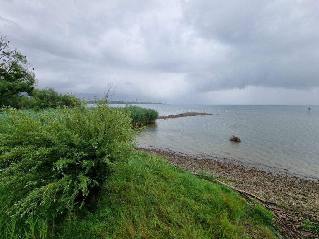 Leider ist auch der 8. Juli 2025 kein Tag, der zum Wandern oder Radfahren einlädt. Viel Zeit bleibt mir aber nicht mehr und ich will auf alle Fälle noch mehr von den Rad- und Wanderwegen am Bodensee kennen lernen. Gut verpackt mache ich mich von meinem Domizil in Wasserburg-Hege auf eine Tour mit dem E-Bike in der Hoffnung, bis zur Grenze nach Österreich und vielleicht sogar bis nach Bregenz zu kommen. Leider hat mein Akku keine allzu große Reichweite. Deshalb wähle ich mir nicht die schönste, sondern die vermutlich kürzeste Strecke in Richtung Lindau aus.