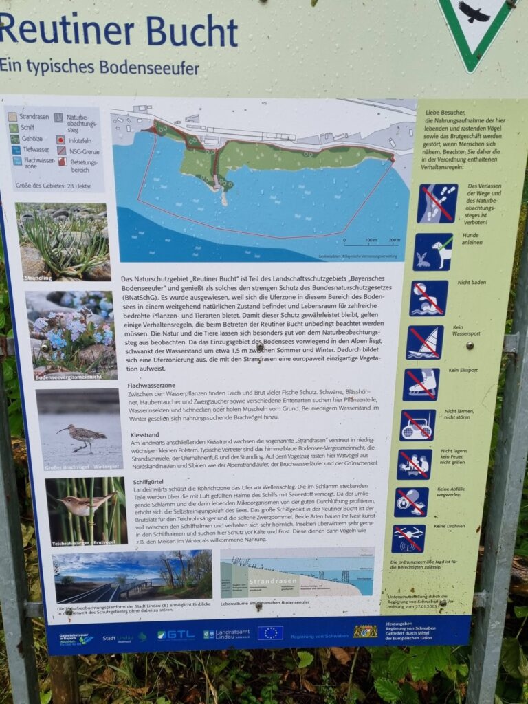 Von diesem mache ich dann einen kleinen Abstecher zum Naturbeobachtungssteg Reutiner Bucht, wo gleich mehrere Infotafeln viel Wissenswertes zum Bodensee vermitteln.
