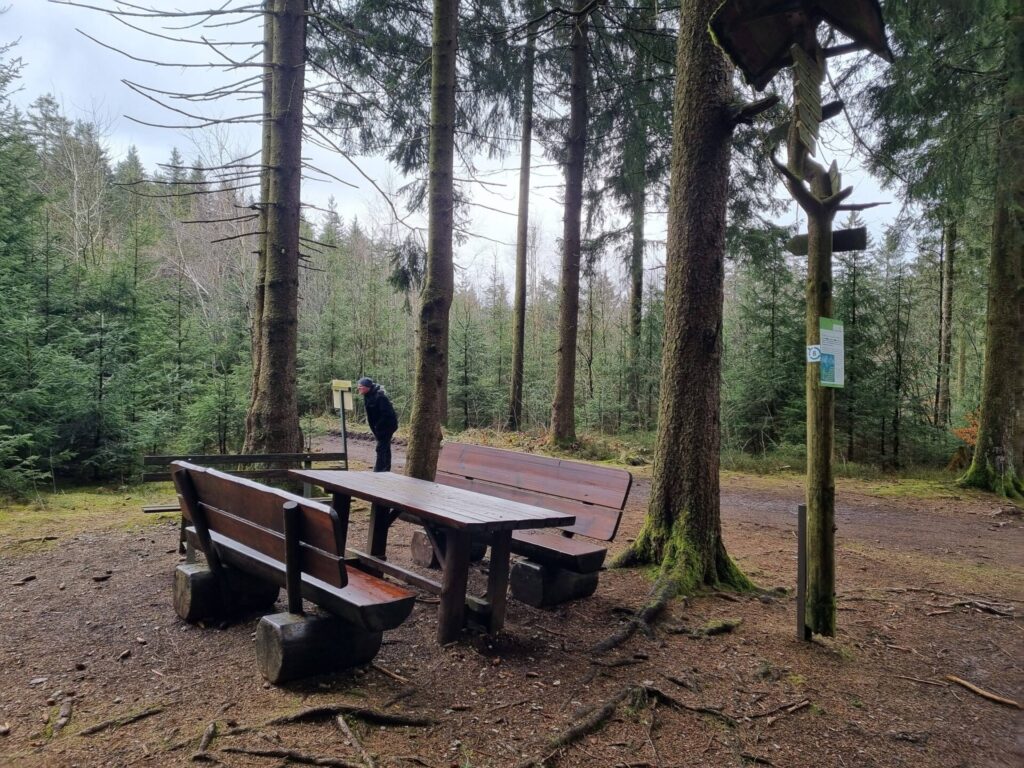 Es später sollten wir feststellen, dass wir auch auf einen Teil der „Großen Acht“ von Steinbach-Hallenberg geraten sind. Wir biegen an der Hütte nach rechts ab und gehen die letzten 500 Meter zum Gipfel des Ruppbergs an.