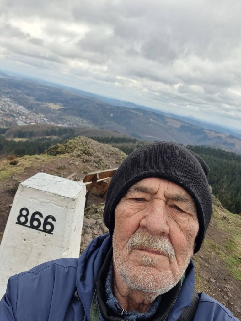 Ein weißer Betonblock mit der Zahl 866 zeigt es uns an: Der Gipfelpunkt des Ruppberges ist erreicht.