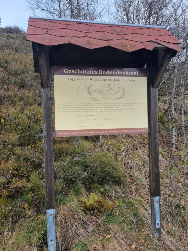Kurz vor dem Gipfel konnten wir auf einer Tafel des Thüringischen Landesamtes für Archäologische Denkmalpflege lesen, dass sich auch schon die Kelten hier wohl fühlten.