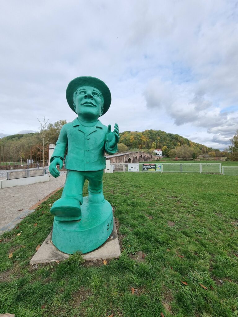 So kam ich schon mehrfach durch Vacha mit seiner „Brücke der Deutschen Einheit“. Hier gibt es eine Symbolfigur, die auch in unserer Kreisstadt Gießen zu finden ist: Das Ampelmännchen.