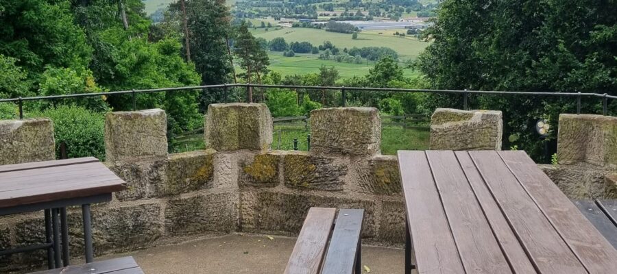 Die Burgruine Krayenburg – Stempelpunkt Nr. 22 Weiter geht es auf der Bundesstraße B 62 in Richtung Osten. Nachdem die ersten drei Stempel vom Keltenpfad