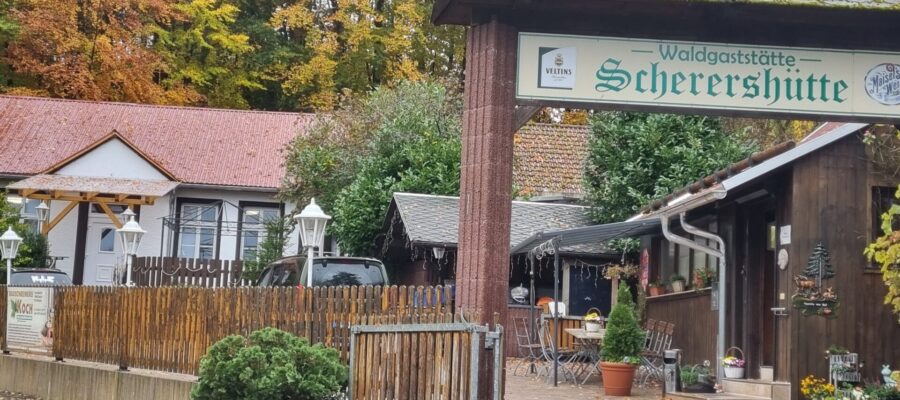 Das beliebte Waldgasthaus Scherershütte Erster Stempelpunkt auf dem Rundwanderweg „Walter Schütz“ ist in der Weg-Kurzbeschreibung auf Seite 202 im Tourenheft die Gothaer Vereinshütte. Der Weg