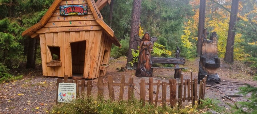 Auf dem Waldgeister- und Feenpfad zum Lindenstein In der beliebten Waldgaststätte Scherershütte nahe der Stadt Ohrdruf warten wir nach einem missglückten Besichtigungsbesuch des Technikdenkmals Tobiashammer